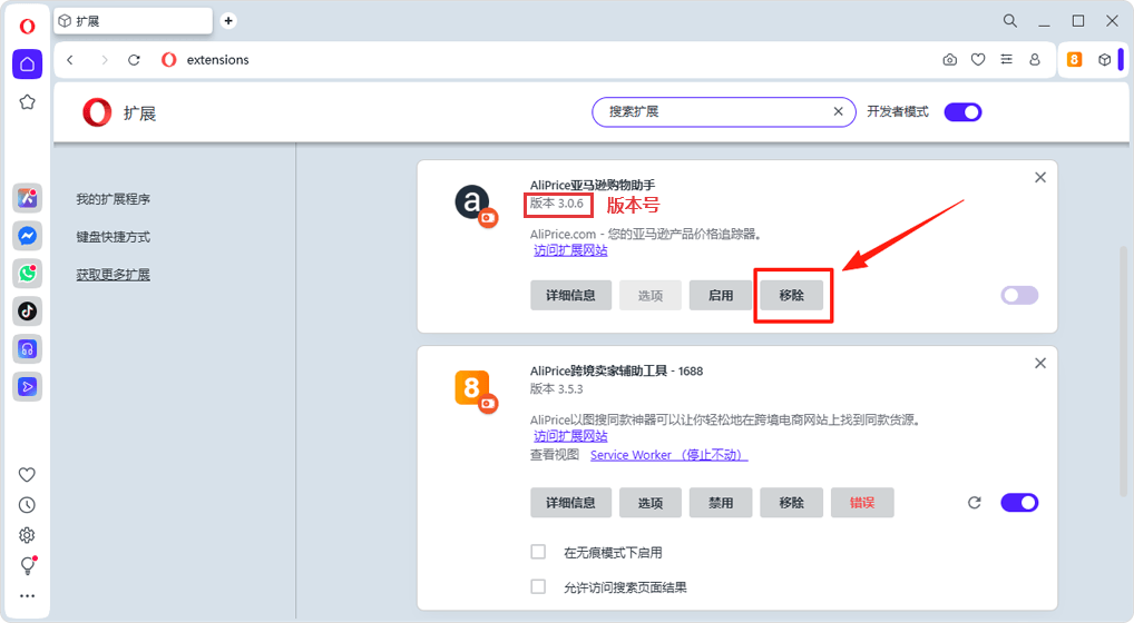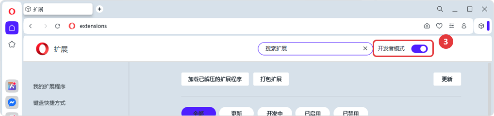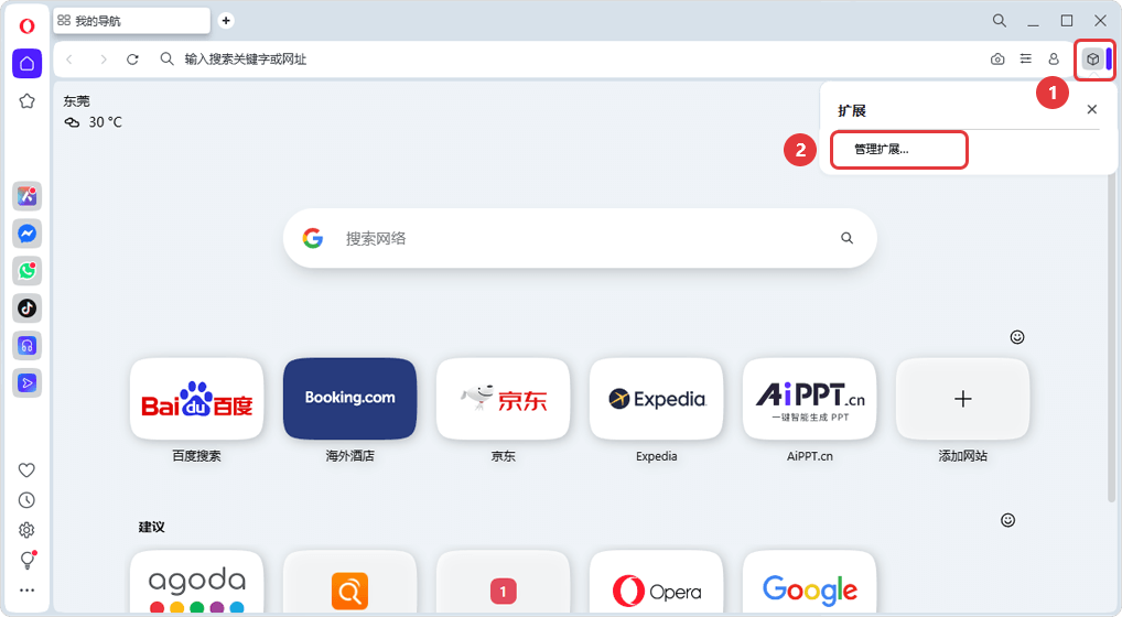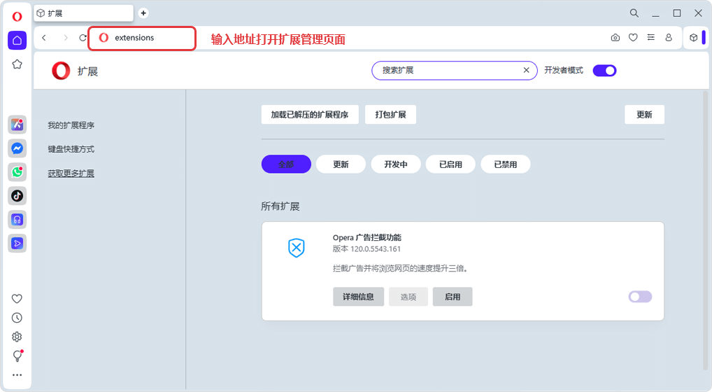 Method 2: Enter opera://extensions Copy link in the address bar to open the extensions management page.